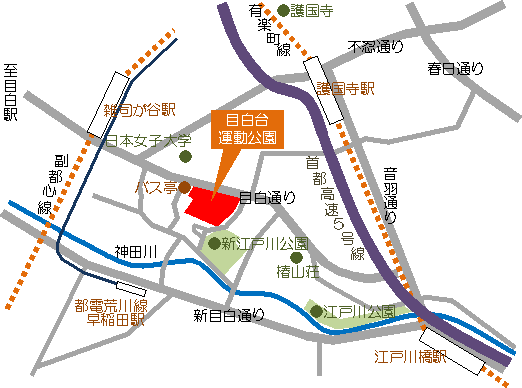 文京区コミュニティバスBーぐる「目白台運動公園」下車すぐ。